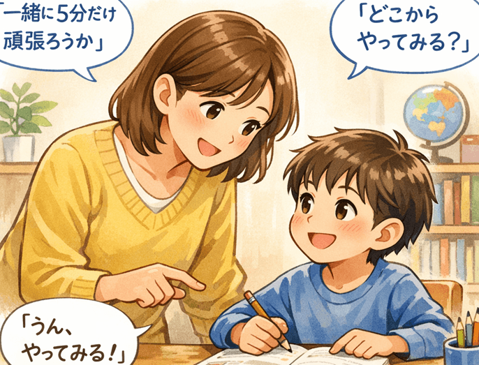 宿題をやらない子どもにイライラしてしまう親へ。怒ると逆効果になる理由と、今日から使える声かけを解説。